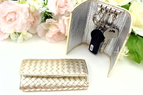 素材 ポニー革 ※表:箔ゴールドポニー革メッシュ、内側:箔シルバーポニー革 サイズ H6×L11×W2(cm) 特徴 馬革独特のしなやかさと風合いの特長を生かして、より優れた南フランスの原料を使用し、タンニン(植物性原料)なめしでなめしたポニー革。元々柔らかいポニー革ですが、こちらの商品ではより柔らかさを出すためにミーリングという加工(機械揉み)を施し、金・銀の箔を張りました。表はその革を6mmに裁断した後、一本一本手編みでメッシュに仕上げました。また、内側のカード段とマチ(革の余裕部分)には本ヌメ革(牛革)を使用し、丈夫で豪華に作り上げました。※カードポケット:12ヶ所 ファスナー:1ヶ所