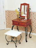 【4月中旬再入荷!予約受付中!】★新製品!ヨーロッパ・アンティーク調天然木ドレッサー&スツールセット★☆オシャレで上品な天然木化粧台&スツール☆♪インテリアとしても華やか、優雅なブラックスチールフレー